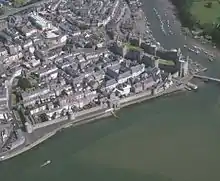 Édifiée entre 1283 et 1292, sous le règne d'Édouard Ier, cette enceinte mesure 734 m de long et comprend huit tours et deux corps de garde. Très endommagée lors de la révolte de Madog ap Llywelyn, en 1294, elle est reconstruite à grands frais l'année suivante. Son importance militaire diminue à partir du XVIe siècle, mais elle n'est jamais détruite. Depuis 1986, elle fait partie du patrimoine mondial de l'UNESCO avec d'autres fortifications édouardiennes de la région.