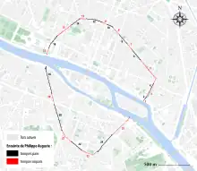 - « Tracé de l'enceinte de Philippe Auguste, Partie septentrionale de Paris d'après un plan allemand » sur Wikimedia.