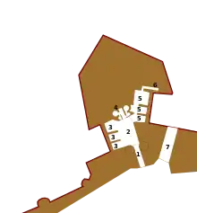 1. couloir d'accès depuis la ville et ancienne porte Cardon;