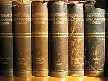 À partir de la seconde moitié du XVIe siècle, les titres se font moins imagés et se limitent à des termes techniques, à mesure que le classement alphabétique se généralise dans les ouvrages de référence. On voit alors s'imposer les termes « dictionnaire », lexicon (anglais) et lexikon (allemand), en concurrence avec « cyclopédie » et « encyclopédie », qui contiennent une idée de totalité et de formation de l'esprit. La langue allemande a longtemps privilégié le titre Konversationslexikon, car ce genre d'ouvrage aide à la conversation des personnes cultivées[15] ; voir par exemple le Bonniers konversationslexikon.