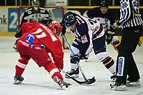 Les engagements se déroulant généralement sur des repères appelés cercle ou points d'engagement. Il y a neuf ronds sur la surface de la patinoire :
