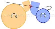 - En horlogerie, les deux roues solidaires sont généralement contigües, et le décalage entre les plans est égal à l'épaisseur dune roue.