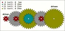 - Les roues intermédiaires sont parfois dénommées "roues d'inversion".