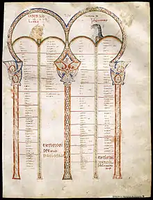 D'autres motifs sont repris de l'enluminure carolingienne : il s'agit de la décoration des lettrines, sous la forme de panneaux d'entrelacs et de nœuds[13].