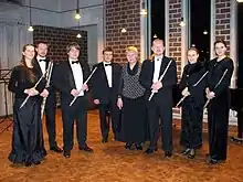 - Bakalian, Craig Music for flute choir (2 piccolos, 6 flûtes en ut, flûte alto, flûte basse[3]