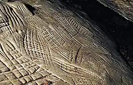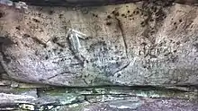 Un certain nombre de représentations sont clairement datées de la période médiévale, telles le chevalier de la « grotte du cavalier »[14]. Ces gravures sont peut-être à mettre en relation avec des murs d'enceinte médiévaux, murs probablement destinés à assurer le pacage de bétail emmené paître en forêt, et avec l'activité des pâtres et bergers de ce bétail[15].