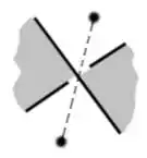 On peut représenter ce signe par la convention d'un trait plein pour un signe + et d'un trait en pointillé pour le signe -. Il y a un choix global des signes, un changement de ce choix correspond à la réflexion dans un miroir. Lorsque le nœud ou l'entrelacs est alterné (alternance des passages dessus-dessous), toutes les arêtes ont le même signe.