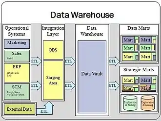 Le terme entrepôt de données[1] ou EDD (ou base de données décisionnelle ; en anglais, data warehouse ou DWH) désigne une base de données utilisée pour collecter, ordonner, journaliser et stocker des informations provenant de base de données opérationnelles[2] et fournir ainsi un socle à l'aide à la décision en entreprise.