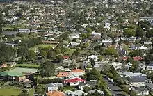 - En anglais, le terme consacré est suburb, généralement traduit par banlieue, terme impropre dans le cas présent puisque cette zone est intégrée à la ville d'Auckland.