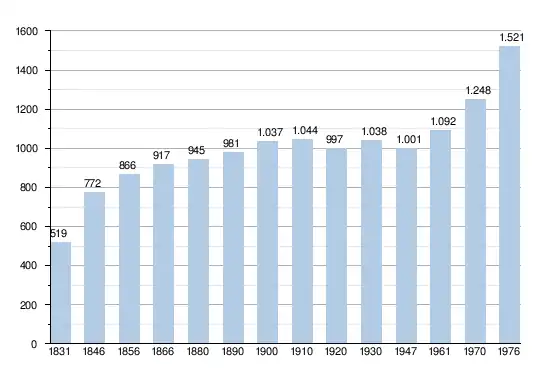 - Sources : INS, Rem. : 1831 jusqu'en 1970 = recensements, 1976 = nombre d'habitants au 31 décembre.