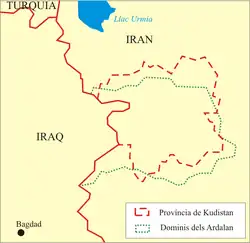 À partir du XVIe siècle, la principauté des Erdalan, qui s'étend des deux côtés de la frontière actuelle de l'Iran et de l'Irak, va être confrontée de plus en plus à la principauté kurde des Baban, qui commence alors son expansion[1].