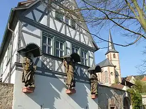 Relais le long du Main construit par Andreas Meisner en 1672, rénové en hotel. Trois grandes statues des apôtres et l'église St. André.