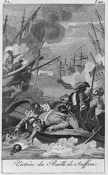 L'escadre de Suffren dans l'océan Indien a pour mission de porter secours aux Hollandais à la suite de la déclaration de guerre de l'Angleterre aux Provinces-Unies en décembre 1780. En effet, le soutien de l'Espagne à la France n'apporte pas les résultats escomptés mais permet de trouver un nouvel allié[1]. Cependant, si les Provinces-Unies peuvent combattre sur les eaux européennes, face aux vaisseaux anglais sur les océans lointains, ils ne peuvent résister seuls[2]. Suffren à 51 ans prend le commandement de sa première escadre après trois années dans le conflit américain, sa réputation de marin combatif est maintenant établie. Il appareille de Brest pour l'Île-de-France le 22 mars 1781 (actuellement l'île Maurice). Il fait escale en juillet 1781 à False Bay près de la ville du Cap après une première confrontation avec la flotte anglaise à Porto Praya (Cap-Vert) en avril 1781.