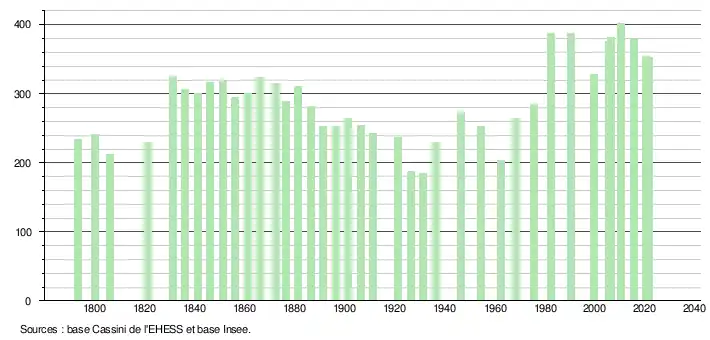 - Fiches Insee - Populations légales de la commune pour les années 2006, 2007, 2008, 2009, 2010, 2011, 2012, 2013, 2014, 2015, 2016, 2017, 2018, 2019, 2020 et 2021.