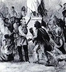Pendant la révolution valaque de 1848, le projet du gouvernement provisoire éphémère incluait l'émancipation (dezrobirea) des Roms en haut de la liste des revendications sociales[76]. Le gouvernement a décrété l'émancipation complète des Roms en indemnisant les propriétaires et a créé une commission (composée de trois membres : Bolliac, Ioasaf Znagoveanu et Petrache Poenaru), qui devait mettre en œuvre le décret. Certains boyards libéraux émancipent leurs robs sans demander de compensation, mais d'autres s'opposent à l'idée de l'abolition. Néanmoins, après la répression de la révolution roumaine de 1848 par les Empires lottoman et russe, les robs retrouvent leur servitude antérieure[77].