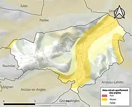 Le retrait-gonflement des sols argileux est susceptible d'engendrer des dommages importants aux bâtiments en cas d’alternance de périodes de sécheresse et de pluie. 29,8 % de la superficie communale est en aléa moyen ou fort (44,5 % au niveau départemental et 48,5 % au niveau national). Sur les 43 bâtiments dénombrés sur la commune en 2019, 25 sont en aléa moyen ou fort, soit 58 %, à comparer aux 75 % au niveau départemental et 54 % au niveau national. Une cartographie de l'exposition du territoire national au retrait gonflement des sols argileux est disponible sur le site du BRGM[22],[Carte 3].