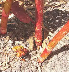 | Cornouiller soyeux | Cornus sericea | Zone humide | Arrachage manuel, coupe répétée |