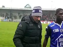 Le , à la suite d’une réunion du conseil d’administration, Aymeric Magne voit son contrat résilié avec effet immédiat[59],[60]. Il est remplacé par le Néerlandais Mattijs Manders[61]. Le 26 novembre 2023, Patrick Kisnorbo est demis de ses fonctions. Alou Diarra, alors entraîneur des U19 de l'ESTAC, assure l'intérim pour 2 matchs de championnat contre les Girondins de Bordeaux et Amiens, soldés chacun par une victoire. L'équipe n'est donc plus relégable lorsqu'est confirmé David Guion au poste d'entraîneur[62], après de nombreuses rumeurs. Il devient donc le cinquième entraîneur de l'ESTAC depuis le rachat par le CFG [...] en comptant l'intérim de Claude Robin le 6 décembre 2023[63].