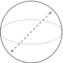 Lors du passage au quotient qui définit l'espace projectif réel , il est possible de se limiter aux vecteurs de norme 1. Ainsi l'espace projectif peut être obtenu comme un quotient de la sphère Sn de dimension n par l'application -Id qui identifie chaque point avec le point antipodal. Cela lui confère une structure naturelle de variété différentielle compacte de dimension n, orientable si et seulement si n est impair[8]. De plus est muni d'une métrique riemannienne canonique, la projection de la sphère sur l'espace projectif étant un revêtement riemannien à deux feuillets. Il s'agit notamment d'une isométrie locale : l'espace projectif est lui aussi de courbure sectionnelle constante valant 1. Les géodésiques sont les images de celles de la sphère, et sont -périodiques[9].