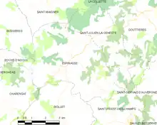 Espinasse est une commune rurale, car elle fait partie des communes peu ou très peu denses, au sens de la grille communale de densité de l'Insee[Note 2],[11],[12],[13]. La commune est en outre hors attraction des villes[14],[15].