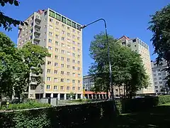 L'esplanade d'Hesperia est large de 60 mètres du côté Est de la rue Runeberginkatu et de plus de 100 mètres de large du coté Ouest.