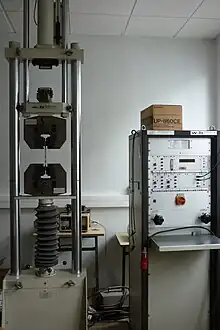 Cet essai ou expérience consiste à placer une petite barre du matériau à étudier entre les mâchoires d'une machine de traction qui tire sur la barre jusqu'à sa rupture. On enregistre l'allongement et la force appliquée, que l'on convertit ensuite en déformation et contrainte. Une variante moderne des essais de traction consiste à utiliser la force centrifuge sur un assemblage pour générer une contrainte de traction. Lorsque la valeur limite de résistance à la traction (exprimée en MPa ou N/mm²) d'un assemblage ou d'un collage est égale à la force centrifuge appliquée, on génère la rupture de ceux-ci et enregistre la limite de rupture. L'avantage consiste à réaliser des tests en batterie sur plusieurs éprouvettes soumises à une contrainte strictement identique lors de l'essai.