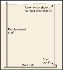 Les effets d'un essai nucléaire souterrain varient en fonction de facteurs tels que la profondeur et la puissance de l'explosion, ainsi que la nature de la roche environnante[23]. Si l'essai est effectué à une profondeur suffisante, le test est dit être contenu, sans évacuation des gaz ou d'autres contaminants dans l'environnement[23]. En revanche, si le dispositif est enterré à une profondeur insuffisante, de la roche peut être expulsée par l'explosion, formant un cratère d'affaissement entouré d'éjectas, et libérant des gaz à haute pression dans l'atmosphère (le cratère qui en résulte est habituellement au profil conique, circulaire et peut varier entre quelques dizaines à quelques centaines de mètres de diamètre et de profondeur[24]). La variable utilisée pour déterminer à quel point la bombe doit être enterrée est la profondeur d'enfouissement calculée (en anglais : « scaled depth of burial, or -burst », SDOB)[23]. Ce nombre est calculé comme la profondeur d'enfouissement en mètres divisé par la racine cubique de la puissance en kilotonnes. Afin d'assurer le confinement, ce chiffre devrait être supérieur à 100[23],[25].