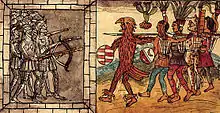 Montaigne ne développe jamais de grandes synthèses historiques dans ses Essais. L'histoire est pour lui "un pêle-mêle d'actions, de gestes, de brefs entretiens, de situations morales ou sociales, de coutumes, de traits de caractères[1]". Il ne se soucie pas de perspectives chronologiques. Les anecdotes historiques foisonnent, mais Montaigne n'y voit qu'une confirmation du fait que notre condition est un changement perpétuel. Il n'utilise pas les historiens antiques pour prévoir l'avenir, mais pour sonder l'humain, et en conclure qu'il ne saurait y trouver une vérité définitive. Son érudition historique est pourtant immense: grand lecteur de Plutarque, d'Hérodote, de Tacite, il s'appuie aussi sur les chroniqueurs du Moyen Âge, Joinville, Froissart ou Commynes, car « en ce genre d'étude des Histoires, il faut feuilleter sans distinction toutes sortes d'auteurs[63] ». Son scepticisme clairvoyant est alimenté par les récits de voyages de Lopez de Gomara ou de Simon Goulard. Certaines pages des Essais[30] puisent ainsi abondamment dans cette littérature ethnographique qui fascine Montaigne et nourrit sa tolérance. Des pages véhémentes dénoncent la colonisation de l'Amérique, « nouvelleté » à l'origine de violences innommables et qui dévoilent les vices des vainqueurs : « Tant de villes rasées, tant de nations exterminées, tant de millions de peuples passé au fil de l'épée, et la plus riche et la plus belle partie du monde bouleversée pour la négociation des perles et du poivre : mécaniques[n 17] victoires[62]. »