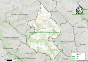 - le « réseau hydrographique du Midou et milieux annexes » (6 344 ha), couvrant 43 communes dont 37 dans le Gers et six dans les Landes[14].
