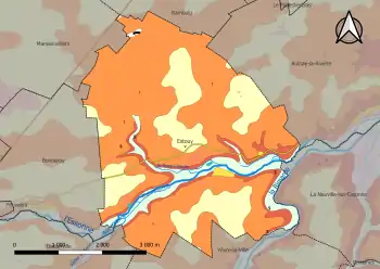 Par ailleurs,le sol du territoire communal peut faire l'objet de mouvements de terrain liés à la sécheresse. Le phénomène de retrait-gonflement des argiles est la conséquence d'un changement d'humidité des sols argileux. Les argiles sont capables de fixer l'eau disponible mais aussi de la perdre en se rétractant en cas de sécheresse[48]. Ce phénomène peut provoquer des dégâts très importants sur les constructions (fissures, déformations des ouvertures) pouvant rendre inhabitables certains locaux. Celui-ci a particulièrement affecté le Loiret après la canicule de l'été 2003. Une petite partie du territoire de la commune, dont le bourg, est soumise à un aléa « moyen » face à ce risque, selon l'échelle définie par le Bureau de recherches géologiques et minières (BRGM)[49].
