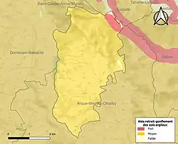 Le retrait-gonflement des sols argileux est susceptible d'engendrer des dommages importants aux bâtiments en cas d’alternance de périodes de sécheresse et de pluie[38]. 99,3 % de la superficie communale est en aléa moyen ou fort (59 % au niveau départemental et 48,5 % au niveau national)[Carte 4]. Depuis le , en application de la loi ELAN, différentes contraintes s'imposent aux vendeurs, maîtres d'ouvrages ou constructeurs de biens situés dans une zone classée en aléa moyen ou fort[Note 8],[39].
