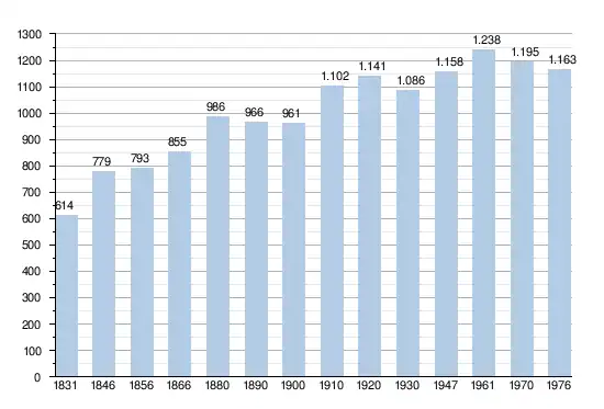 - Sources : INS, Rem. : 1831 jusqu'en 1970 = recensements, 1976 = nombre d'habitants au 31 décembre[2].