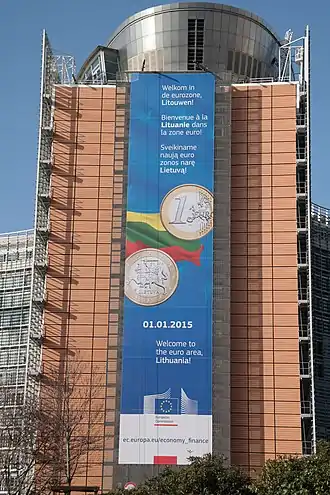 Le , le Parlement lituanien adopte une loi prévoyant l’adhésion à l’euro le [2],[3]. Le , la Commission européenne et la Banque centrale européenne donnent leur accord pour que le pays devienne ainsi le 19e membre de la zone euro[4]. En effet, l'exécutif européen considère que la Lituanie « remplit maintenant tous les critères de convergence »[4]. Le , le Parlement européen donne son feu vert[5]. Le , le Conseil européen entérine définitivement l'adhésion à la zone euro au [6],[7].