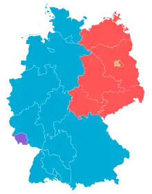 Il faut attendre le pour que la station Europe no 1, reprenne l'ancienne fréquence de Radio Paris, proche de celle (185 kHz) du Deutschlandsender de la R.D.A. orientée vers l'est[13], en se fixant sur 1 647 m grandes ondes (182 kHz) depuis un émetteur de 400 kW situé sur le plateau du Felsberg, près de Sarrelouis (Saarlouis) en Sarre alors sous protectorat, ce qui lui donne la liberté de disposer à son gré de l'attribution de fréquences de radio-télévision[14].