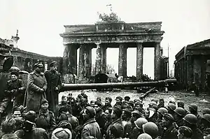 Il entre au PCUS en 1941. Il est correspondant de guerre jusqu'à l'acte de capitulation de l'Allemagne le 8/9 mai 1945. Il se trouve à Berlin à la chute de la capitale de l'ancien Reich. Une photographie célèbre d'Evgueni Khaldeï montre le jeune poète portant sous le bras un buste d'Hitler comme trophée, le 2 mai 1945, près du palais du Reichstag[7].