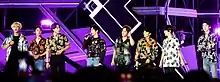 EXO à la conférence de presse de leur album EX'ACT en juin 2016.