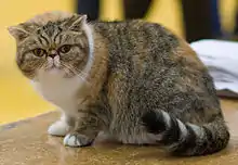 L'exotic shorthair est la variété à poils courts du persan. Il partage sa morphologie ramassée toute en rondeur et le profil écrasé du visage. Toutes les couleurs et patrons de robe sont autorisés, et la plupart des fédérations autorisent les croisements avec le persan.