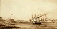 Les opérations commencent le matin du à Macao[4]. Le capitaine James Scott (en) commande la flotte, qui se compose du HMS Samarang (en) et des vapeurs Nemesis et Atlanta de la Compagnie britannique des Indes orientales. Trois autres bateaux accompagnaient le Nemesis : deux du Samarang et un de l'Atlanta[3]. À bord du Nemesis se trouvent le capitaine William Hall (en), plénipotentiaire et surintendant en chef du commerce britannique, Charles Elliot, surintendant adjoint au commerce, Alexander Johnston (en), et les interprètes John Morrison et Robert Thom (en). Un officier britannique écrit que « la connaissance de la langue par les interprètes et leur bon jugement enrôlaient souvent en notre faveur les habitants locaux, ce qui aurait pu beaucoup nous agacer, et ils étaient souvent capables d'atténuer les difficultés même de la guerre elle-même »[4].
