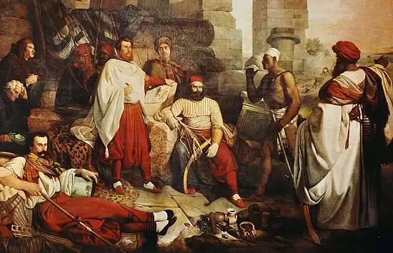 Extrait du carnet de dessins de Salvatore Cherubini, dessinateur de l'expédition et fils de Luigi Cherubini (v. 1829) ;