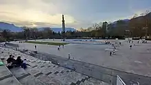 Paul Mistral obtient que Grenoble soit le lieu de l'exposition internationale de la houille blanche de 1925 et décide de l'organiser sur le terrain déclassé. En 1924, cinq mois de travaux de démolition puis de terrassement ont lieu pour une inauguration le 21 mai 1925. L'exposition accueille 1 050 000 visiteurs[15]. Mistral fait démolir 825 mètres de remparts pour étendre la ville. La route d'Eybens, aujourd'hui avenue Jean Perrot, est redressée et élargie. Une tour d'orientation est érigée par Auguste Perret. D'abord appelée Tour de l'Exposition, elle devient la tour Perret par la suite. Il s'agit de la première tour en béton armé construite en Europe et elle est l'unique bâtiment conservé après l'exposition[16].
