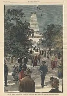 Le site avait ceci de remarquable qu'il pouvait être accessible directement par chemin de fer (une gare fut construite), bateau à vapeur ou navire océanique (des embarcadères fluviaux et maritimes furent prévus). Le bâtiment principal couvrait 13 hectares et était la plus grande structure couverte à cette époque, illuminé par 5 000 lumières électriques, système relativement nouveau, quand la ville, elle, n'en comptait que quelques centaines. Le site comprenait également une vaste salle horticole (Horticultural Hall), une tour d'observation desservie par un ascenseur alimenté par l'électricité, sans compter les pavillons représentant tous les pays et les industriels invités. Le parc était sillonné d'une ligne de tramway également alimentée par l'électricité. Le pavillon mexicain était le plus somptueux, il fut aussi le plus populaire : il coûta plus de 200 000 dollars et mettait en vedette une énorme fanfare qui attira les foules[2],[3],[4]. Le pavillon français était représenté par son délégué, Henri Farjas, qui était parvenu à mobiliser quelques industriels, et eut un certain succès auprès de la communauté francophone locale[5].