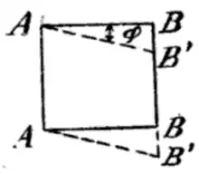 - le changement de forme sans dilatation d'ensemble : cette composante est appelée « distorsion[4] » ou « glissement[5]. »