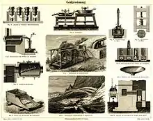 Les entreprises de plus grande importance utilisaient sur les « placers » des installations industrielles de criblage (trommels) pour séparer les roches et graviers des particules fines et concentrer le travail d’extraction de l’or sur ces dernières, dans une boîte d'écluse ou des systèmes plus « industriels ».