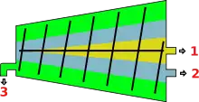 Le décanteur à deux phases et demie est le type le plus récent et il reprend les mérites des deux systèmes précédents. Le traitement nécessite l'ajout d'une quantité réduite d'eau et sépare trois fractions (grignon humide, margines, moût d'huile). L'avantage de ce système est qu'il produit une quantité moindre de margines et avec une charge polluante plus réduite. Les grignons humides ont encore une faible valeur, toutefois il est possible de les traiter par des systèmes qui permettent une récupération économique en exploitant le potentiel énergétique des grignons.