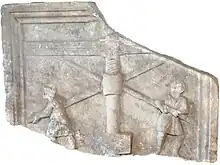 - des meules cylindriques utilisées perpendiculairement, appelées mola et recommandées par l'agronome latin Columelle.