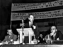 — Louis Laberge, président de la FTQ, devant 13 000 travailleuses et travailleurs au forum de Montréal,