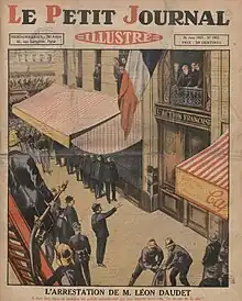En 1927, les Camelots du Roi participent activement à la protection de Léon Daudet et de Joseph Delest lorsqu'ils sont sommés d'effectuer une peine de prison à la suite de la plainte du chauffeur de taxi Bajot cité dans l'affaire Philippe Daudet[56]. Dès le 9 juin 1927, Léon Daudet se retranche dans les locaux de l'Action française, rue de Rome, pour se soustraire à la justice. Les Camelots du roi et les ligueurs barricadent les lieux façon Fort Chabrol. Après trois jours de siège qui donnent lieu à d'importantes bagarres avec les forces de police, le préfet Jean Chiappe obtient la reddition des deux principaux forcenés qui sont immédiatement incarcérés à la prison de la Santé. Le 25 juin 1927, la téléphoniste Charlotte Montard fait évader Léon Daudet, Joseph Delest et le communiste Pierre Semard grâce à un canular téléphonique auprès du directeur de la Santé. Pour ce plan, Charlotte Montard délègue à une dizaine de Camelots du Roi dont André Real del Sarte et Pierre Lecœur, la responsabilité de saturer les lignes téléphoniques de la prison.