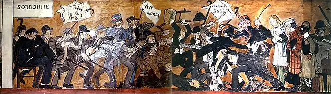 D’autres incidents surviennent à la Sorbonne, comme la campagne contre le professeur de droit Gérard Lyon-Caen, de confession juive, que les Camelots du roi réussissent à faire mettre en retraite anticipée[26] ; ou encore l'intervention de Maurice Pujo faisant irruption dans une salle de cours de l’université et écartant le chargé de cours pour donner une leçon sur l’Action française.[réf. souhaitée]