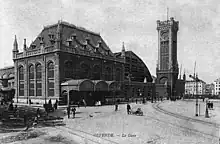 - L'ancienne gare fut fortement endommagée lors de la Deuxième Guerre mondiale et fut démolie en 1956