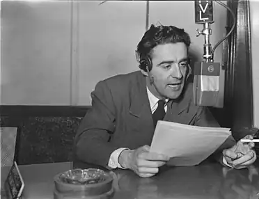 - 1938 – Il est engagé comme annonceur radiophonique au poste CHLN, à Trois-Rivières. Écriture et réalisation de ses premiers sketches pour la radio[19].
